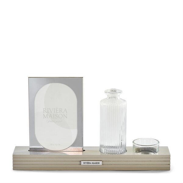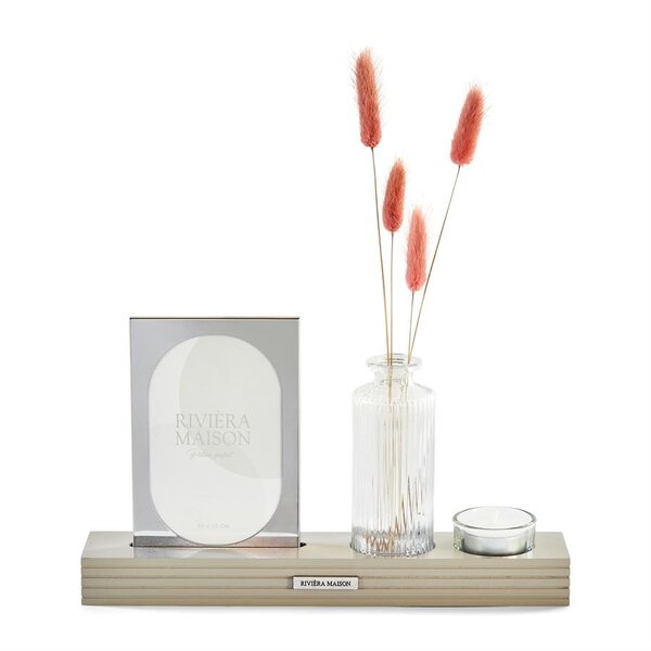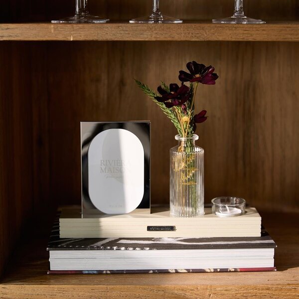 Stimmungsvolles Stillleben: Rivièra Maison Port Louis Multiple Frame Geben Sie Ihrer schönsten Erinnerung einen Ehrenplatz mit dem Port Louis Multiple Frame von Rivièra Maison. Dieser einzigartige Fotorahmen ist mehr als nur eine Einrahmung; er ist ein komplettes Mini-Stillleben. Der Rahmen aus glänzendem Aluminium ruht in einem eleganten Holzhalter, in dem auch eine stilvolle Vase aus Reliefglas und ein gläserner Teelichthalter integriert sind.