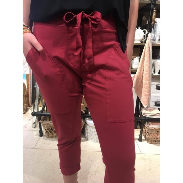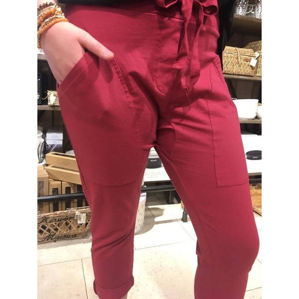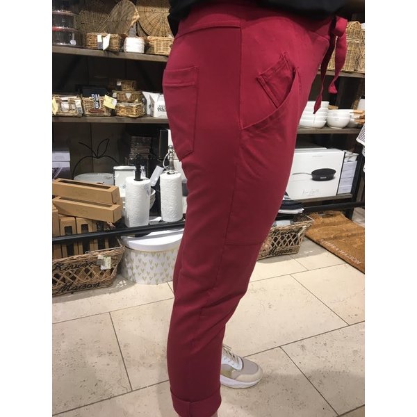 Pantalon de jogging avec poches cousues. Ce pantalon est composé de coton et d'une matière élastique. Il y a deux grandes poches latérales sur le devant et un cordon de ceinture dans l'ourlet pour maintenir le pantalon en place.
