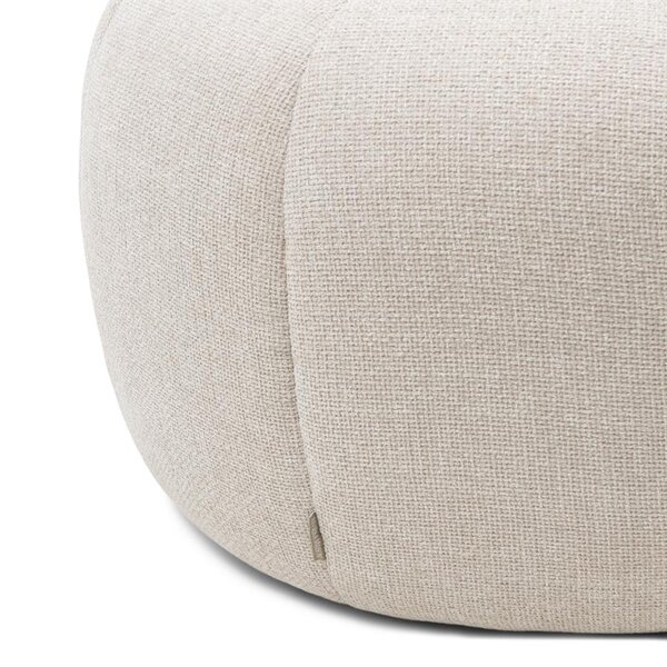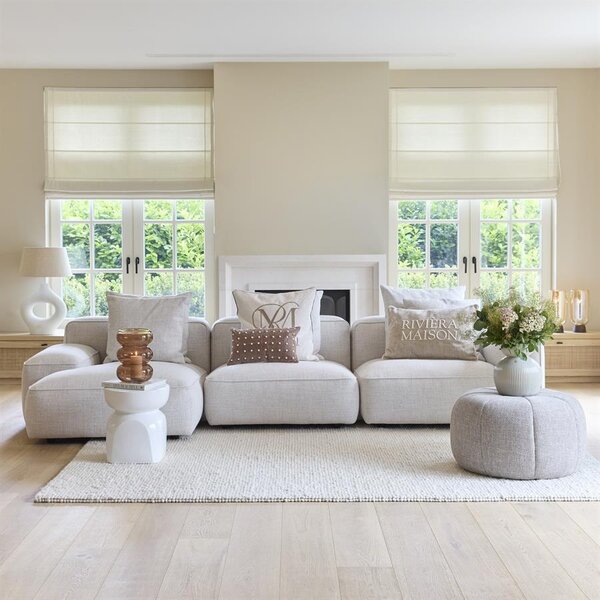 Scandinavische Elegantie: Rivièra Maison Falcone Poef De Falcone poef van Rivièra Maison is een meesterlijke combinatie van comfort en Landelijk Luxe. Deze royale poef is bekleed met een hoogwaardige chenille stof in de verfijnde kleur "Glossy Flax", wat zorgt voor een zijdezachte zitervaring en een warme, uitnodigende uitstraling. Het stevige onderstel van duurzaam rubberhout biedt niet alleen stabiliteit, maar versterkt ook het tijdloze Scandinavische karakter van dit meubelstuk.