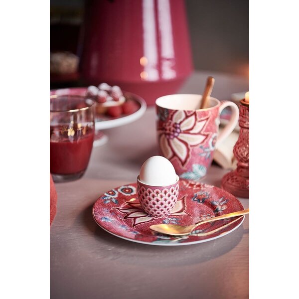 Fleur je tafel op met dit gebaksbordje uit de Flower Festival collectie. Het bordje heeft een bloemendessin met fantasierijke rode en roze chintzbloemen met lichtblauwe en groene bladeren.